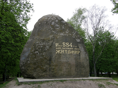 Согласно преданию, город основан в 884 г., а свое название получил от имени дружинника киевских князей Аскольда и Дира – Житомира. Он будто бы отказался служить Олегу Вещему, который убил князей, спрятался в лесах и потом поселился на скале при слиянии рек Каменки и Тетерева.