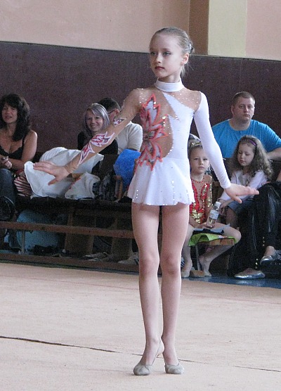 Потом, маленькие детки выступали по программе "Baby Cup" ("Детский кубок") и тоже занимали призовые места. Достижения есть, есть дети-кандидаты в сборную Украины: наша старший тренер Дерюгина Альбина Николаевна прислала нам на комитет список кандидатов на участие в Олимпийских играх. Сегодня одна девочка участвовала в соревнованиях.