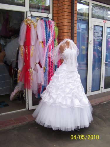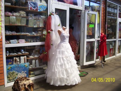 Салонов, где можно подобрать красивое платье, очень много. По рассказам почти всех продавцов, украинский рынок свадебных нарядов самый большой в Европе. Действительно, свадебные платья в бутиках имеются разнообразнейших фасонов –на любой цвет и вкус. Стоимость – от 700 до 3000 грн. Снова возьмем среднюю цену за свадебное платье, получим 1000 грн.