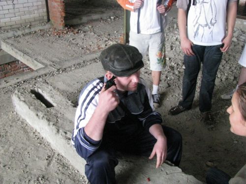 Понравилась игрокам и «Русская рулетка» с «гопарями», правда вместо настоящего револьвера использовали детские пистолеты, в народе называемые «пугачами». Патронов не было, но из-за отличной акустики в здании выстрел около уха был очень звонким и изрядно пощекотал нервы.