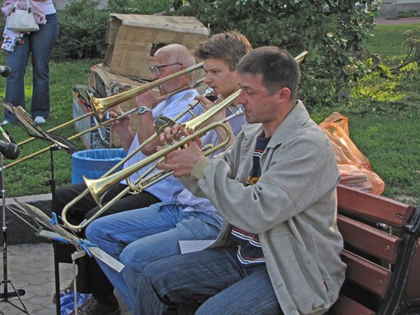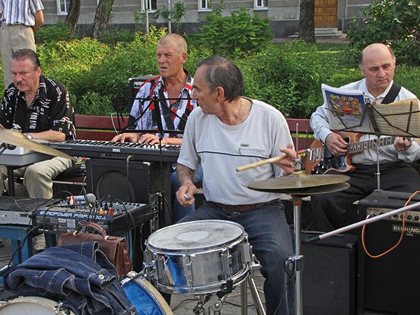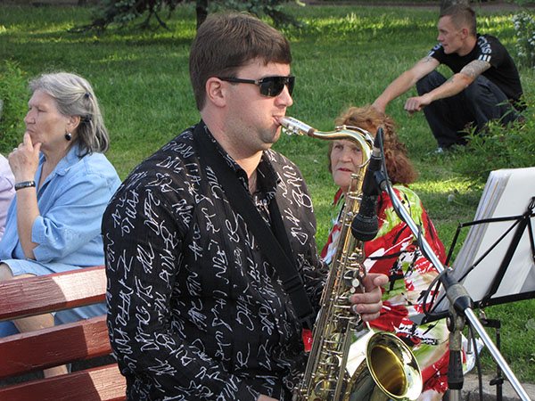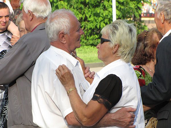Жители города, семьями и с друзьями, в этот погожий день отправились в парки и скверы. На Алее Героев было многолюдно, здесь под звуки оркестра Городского дворца культуры, проходили танцы или как называют их в городе: «Вечера отдыха для тех, кому за…».