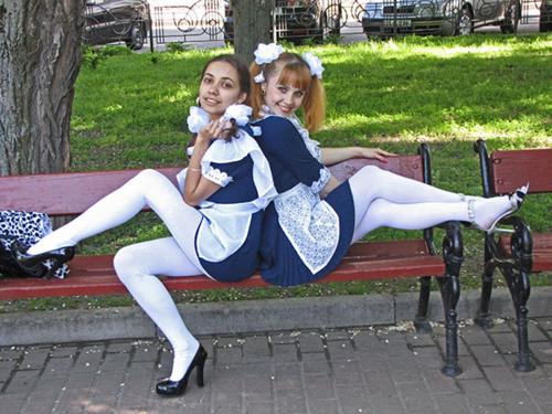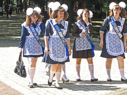Девочки разгуливали в белых передниках с бантами и лентой через плечо. Мальчики, солидные и мужественные, также были очень нарядные.