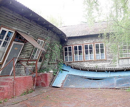 О хозяина: «Вот так выглядит столовая лагеря «Дружба» на Подусовке. Здание не выдержало зимы – и крыша завалилась, хотя внутри следов разрухи еще нет!»