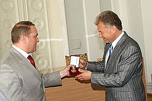Під час засідання в міській раді гості виконали приємну місію — вручили міському голові Олександру Соколову почесний знак Міжнародної поліцейської асоціації «За мужність та професіоналізм», а його заступника Станіслава Віхрова прийняли в почесні члени Міжнародної поліцейської асоціації.