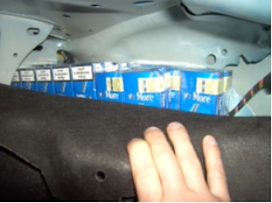 Під час проведення візуального спільного огляду було помітно, що водій дуже знервований. На основі аналізу та оцінки ризиків також було прийняте рішення про огляд даного автомобіля спеціальною групою. В ході огляду в конструктивних особливостях автомобіля, під обшивкою багажного відсіку та всередині передніх сидінь, були виявлені приховані від прикордонно-митного контролю 12 блоків цигарок „More” та „KISS”.