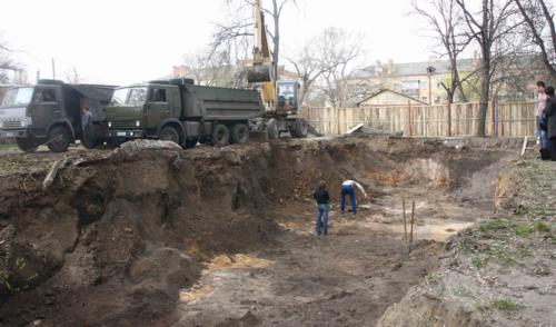 Сегодня ходят слухи о том, что данное здание строят «на костях». Насколько верно такое заявление? О том, что показали проведенные раскопки, мы спросили у научного сотрудника Национальной академии наук Елены Черненко: - Обычно изучаются объекты, построенные в XVIII веке и раньше Объекты ХІХ-ХХ веков не имеют большой исторической ценности, поскольку задокументированы очень хорошо. Здесь все перекопано до уровня «материка» котлованами строительства ХІХ-ХХ веков. Как мы видим, в этом месте была плотная застройка довоенного времени. Она была разрушена и снесена. То, что вы видите: деревянные конструкции, заваленную кирпичную стенку, кирпичи - это тот «XIX век», который разрушил «культурный слой». Глубже копать мы не будем: это уже - уровень «материка». То есть ниже лежит слой, который образовался до заселения человеком этой территории. Он уже интересует геологов, а не археологов. На месте раскопок я не увидел ни склепов, ни костей, ни самого кладбища. А если специалист утверждает, что в этом месте была плотная довоенная застройка, разрушенная в годы войны, то получается, «дом на костях» - это еще один миф, созданный теми, кому это выгодно?..Мнение