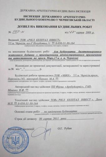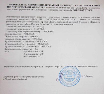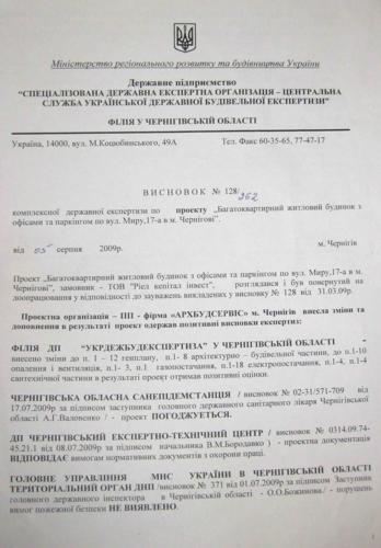 Еще на этапе согласования документации вопрос об этажности дома возник у главного архитектора Чернигова Людмилы Павлинской. Она обратилась за разъяснениями к разработчику «Генерального плана развития Чернигова», «УкргосНИИ проектирования городов «Гипроград» с просьбой предоставить вывод относительно повышения этажности многоквартирного жилого дома. И положительный вывод был получен!