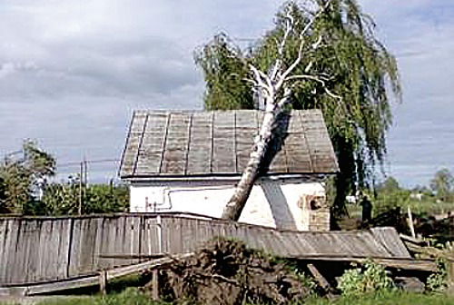 Об урагане: 25 мая по Ичнянскому району прошелся ураган. Напакостил прилично! И кровли домов посносил, и без электричества многих оставил. К счастью, в результате ни один человек не пострадал. Но дома после урагана выглядят теперь так.