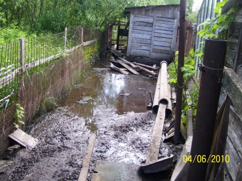 Что не решилась сделать весной наша красавица-Десна, сделал дождь: залил, подтопил, привел в негодность. Я поговорил с находившимися почти в шоке жителями этого района, и вся картина прояснилась. По их словам, раньше дождь таких проблем не приносил. Вся вода уходила по специальным сточным канавам (ливневкам) и небольшие приусадебные участки не страдали. А вот с момента строительства на районе современных «теремов» ливневки засорились, так как никто за ними не следит, и вода пошла на дома.
