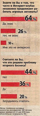 Мы решили поинтересоваться у жителей Чернигова, что они думают о запрете игрового бизнеса и считают ли они, что это решило проблему? Итак, подавляющее число горожан (79%) положительно оценивают решение правительства о закрытии игрового бизнеса. Однако же считают, что это решило проблему только 36% опрошенных. 44% горожан не считают это выходом. Осведомлены о том, что Интернет-клубы — это следующая цепочка в игровом бизнесе 64% населения. Не догадываются о том, что игровой бизнес живее всех живых — 36%.