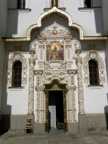 Еще один древнерусским храм Лавры – Троицкая надвратная церковь – была построена в1108 г. на пожертвования Николы Святоши, сына черниговского князя Давыда Святославича. Отказавшись от княжеской карьеры, Святослав Давыдович (имя князя в миру) в 1107 г. ушел в Печерский монастырь, пожертвовав ему все свои сбережения и богатейшую библиотеку. Мощи преподобного Николы Святоши почивают в Ближних пещерах Лавры, а в черниговских пещерах один из подземных храмов посвящен ему.