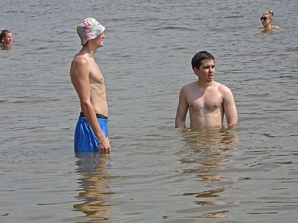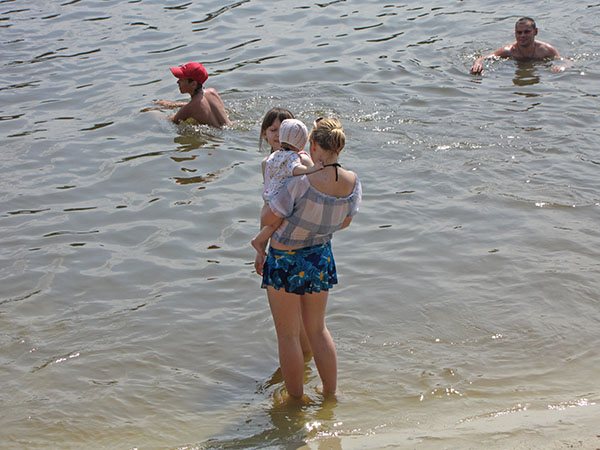 Официально, открытие городского пляжа «Золотой берег» было запланировано на 12 июня. Но видимо службы ответственные за это мероприятие, не успели к назначенной дате подготовить городской пляж. Буйки отсутствуют, спасателей в лодках не видно, да и песка маловато, который смылся вместе с уходящей водой. А жителей города это не останавливает. В выходные дни, с друзьями и подругами, семьями и поодиночке они плотно оккупировали «Золотой берег».