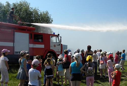 Ознайомитись із заходами пожежної безпеки, методами боротьби з вогнем та можливостями підрозділів учасники акції змогли біля основного автомобіля рятувальників – пожежної автоцистерни. Підрозділ продемонстрував гасіння умовної пожежі з стаціонарного пожежного ствола, а дехто з підлітків навіть "освіжився" під струменями води.