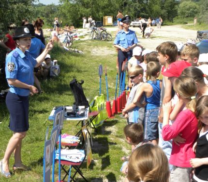 І на завершення – ознайомилися з правилами дорожнього руху і технічним забезпеченням підрозділів ДАІ. Засоби захисту працівників міліції, озброєння – все це було продемонстровано і викликало неабиякий інтерес присутніх. Діти у спеціальному автомобілі ДАІ, де була включена сирена та проблискові маячки, відчули себе справжніми правоохоронцями, які переслідують злочинців.