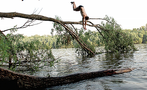 О самоубийцах: «Вот такую картину увидела в выходные на одном из пляжей. Зрелище захватывающее, да и понимаю - хочется ребятам экстрима, но вот торчащая рядом коряга заставляла меня после каждого прыжка гадать: выплывет-не выплывет...»