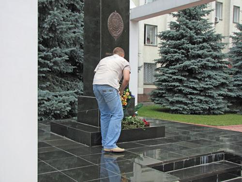 Учасники акції поклали червоні троянди до стели, та до пам`ятника правоохоронцям, які загинули виконуючи свій обов`язок.