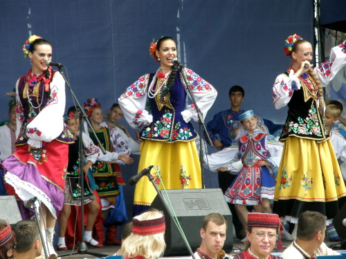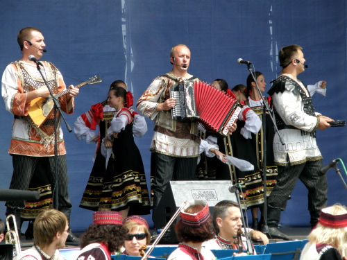 Но главное действо фестиваля происходило на концертной сцене, где выступали известные коллективы и исполнители. Принимающей стороной в этом году как раз была Украина.