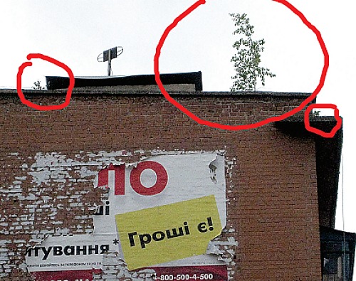 О растительности на крышах: березы на крышах - показатель работы коммунальных служб города. Можно сколько угодно рассказывать о ремонте и обслуживании крыш многоэтажек, но если на них растут березы и вековые дубы - в работу коммунальных служб как-то слабо верится…