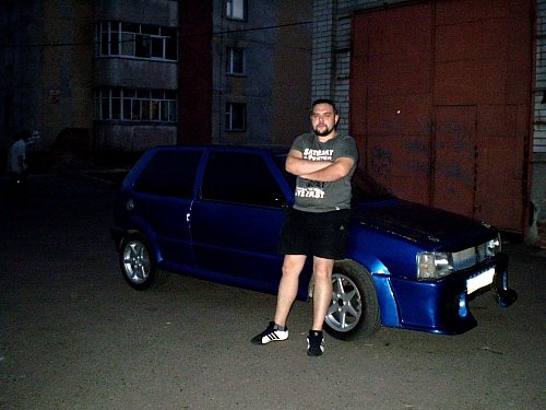 — Здравствуйте, уважаемая редакция. На этих фотографиях я и мой FIAT Uno75 1987 года выпуска. Мой фиатик уникален, так как в нем доробатывалось и изменялось практически все — от двигателя до замков на капоте. Арки и пороги — металл, газовые стойки, фильтр нулевого сопротивления, прямоточная сиистема выхлопа, диски R-15, резина Michelin. Бампера тоже делались исключительно под эту машину вручную. Эта машина принимала участие в черниговских уличных гонках, где не раз мы побеждали в своем классе!