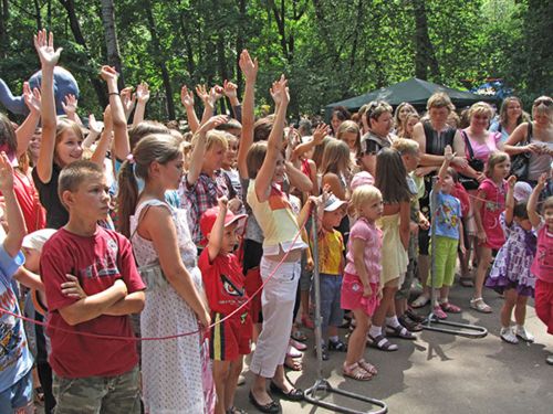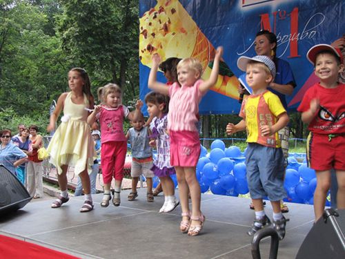 Гостей Праздника развлекали веселые слонята. Они танцевали с любителями мороженого, водили хороводы с маленькими гостями, дарили подарки. Организаторы предложили отдыхающим разнообразные конкуры, даря им радость, веселье и массу впечатлений. И, конечно же, горы вкусного, разнообразного мороженого, которое с удовольствием поедалось как детьми, так и взрослыми в этот жаркий летний день. Желающие, предъявив упаковку от съеденного мороженого, могли у специалистов работающих здесь же в палатках, сделать модную прическу или красочный рисунок на теле.