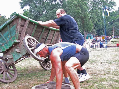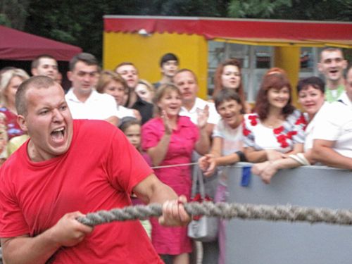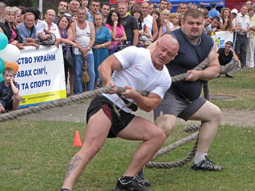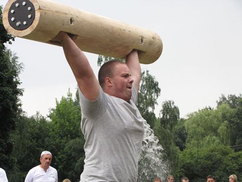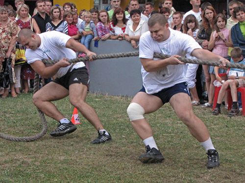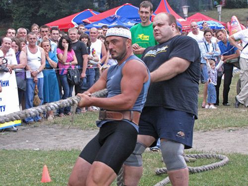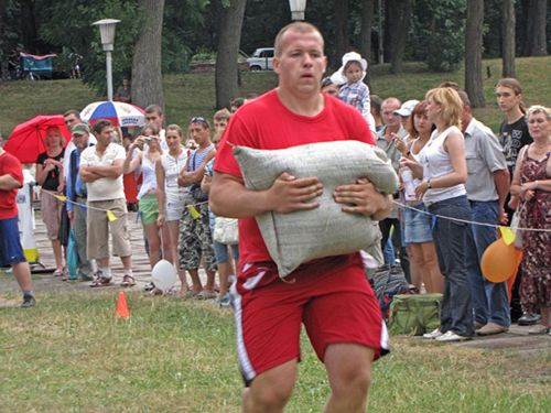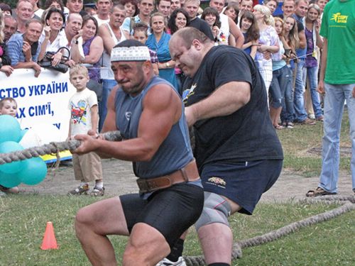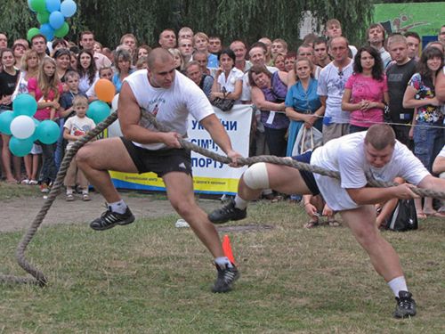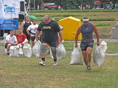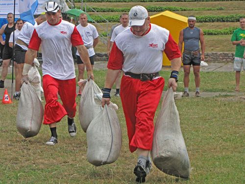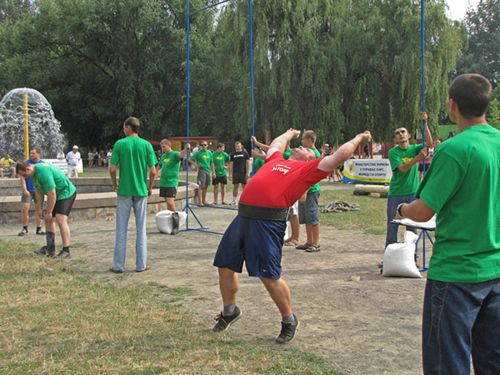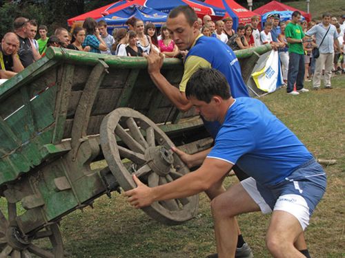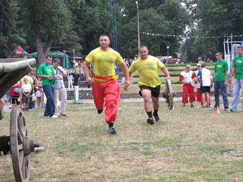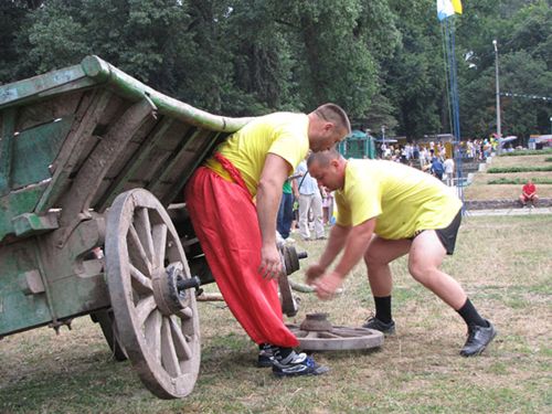На протяжении пяти часов атлеты выявляли сильнейших. Состав команды – два человека. Атлеты бросали сапожок в высоту весом 5 килограмм, на скорость переносили 50-килограммовые мешки с солью и складывали их на телегу, меняли запасное колесо на телеге, причем в качестве «домкрата» выступал один из членов команды, поднимали колоду весом 70 кг. Большой интерес у зрителей вызвали состязания в перетягивании каната, в котором победила команда Черниговской области. А завершились эти увлекательные соревнования упражнением от Александра Пеканова, подъемом 75-килаграммовой гантели.