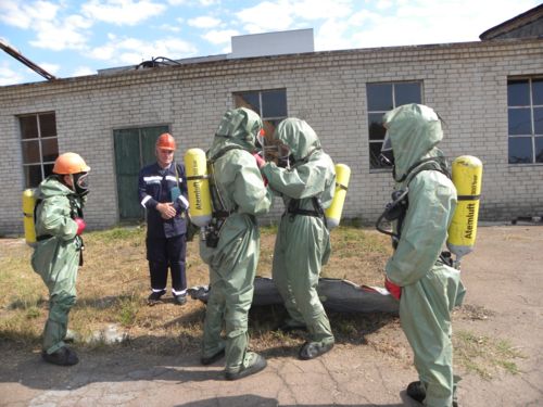Наступним етапом навчань стало відпрацювання дій в разі виникнення аварії на такому хімічно-небезпечному об’єкті, як Ніжинський молокозавод. За легендою, на даному підприємстві не спрацювала запірна арматура, через що стався вилив 800-т кг рідкого аміаку. Першими приступили до ліквідації аварії об’єктові спеціальні формування. Вони провели евакуацію робочого персоналу. У цей час диспетчер сповістив про подію спеціалізовані служби цивільного захисту міста. За кілька хвилин до місця аварії прибули підрозділи МНС, міліція, бригада швидкої допомоги та міська СЕС.