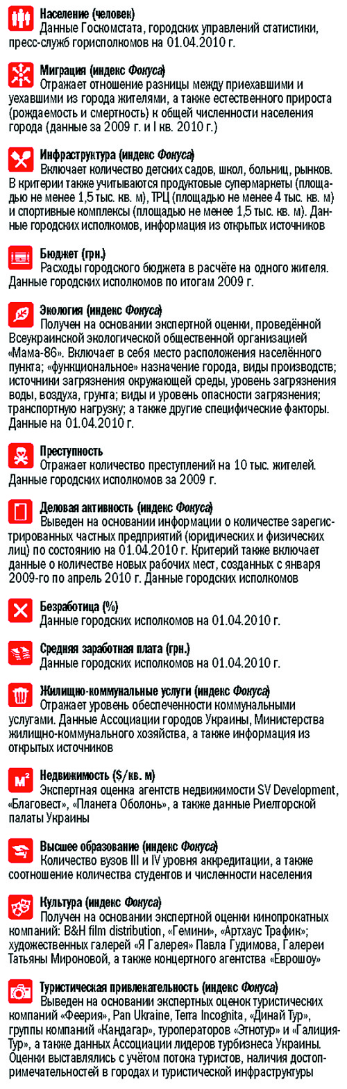 Такое падение частично можно пояснить тем, что журнал каждый год выбирает приоритеты среди критериев оценки, которые наиболее адекватно, то есть в соответствии с требованиями жизни, отображают развитие города. Учитывая, что эксперты предсказывают очередную волну кризиса, в этом году «Фокус» сосредоточился на реальных бизнес-достижениях городов.