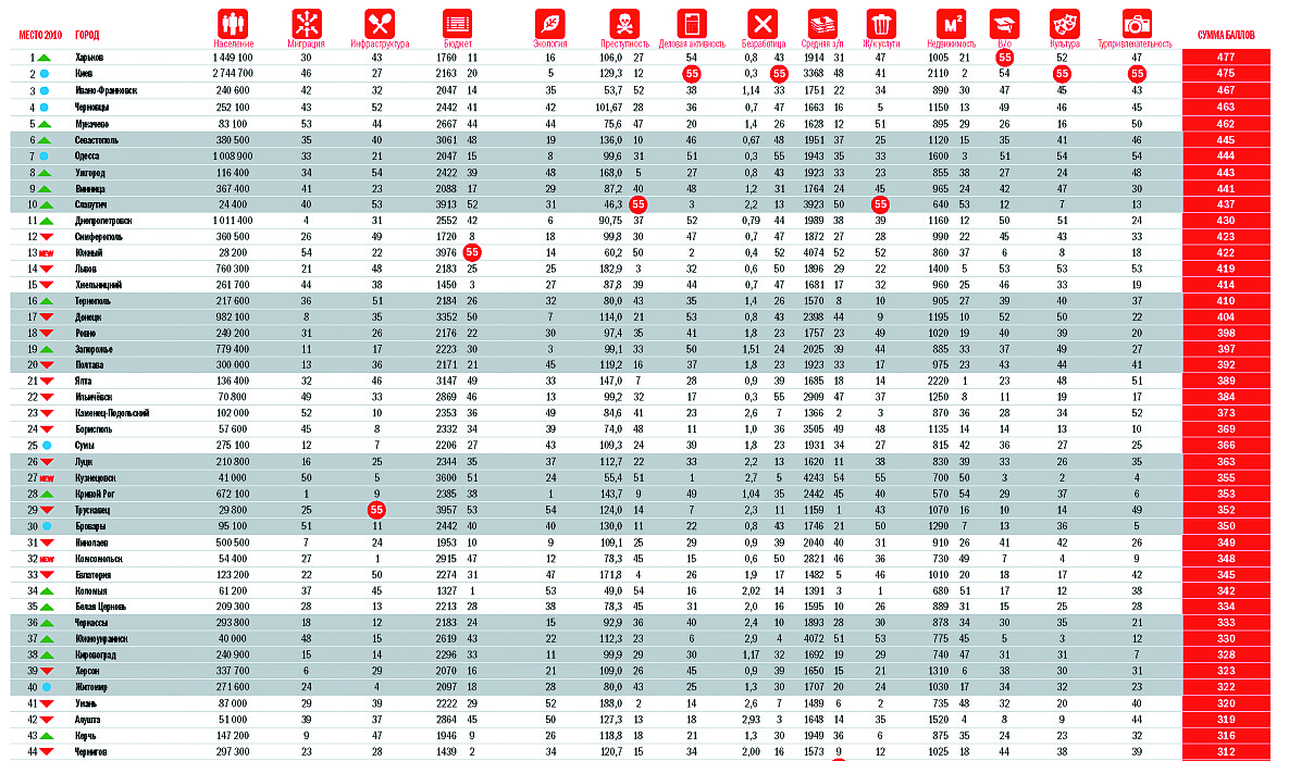 Но что особенно неприятно, так это резкое падение «на дно» списка по критериям, которые в прошлом году принесли Чернигову максимальное количество баллов. Судя по рейтингу, темпы ухудшения экологической ситуации в городе угрожающие, а жилищно-коммунальный сектор за год просто деградировал. Потеря 32 позиций в категории «преступность» как минимум озадачивает…