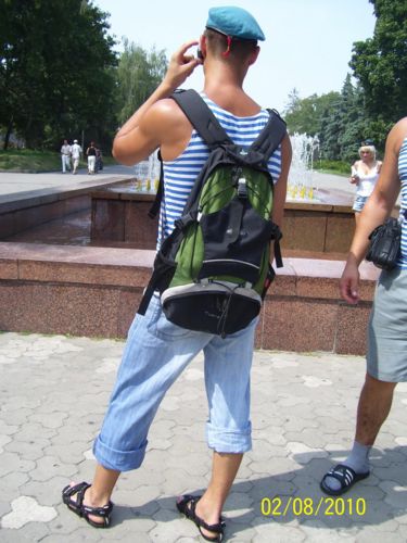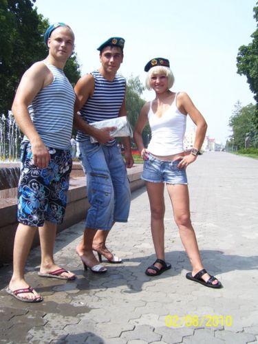 Еще раз прошелся по городу после обеда и ближе к вечеру. Никаких массовых десантных вакханалий не увидел. Ну, сидели спокойненько двое в тельняшках на скамейке. То ли дремали, то ли вспоминали, где живут. А может, просто устали от впечатлений и воспоминаний!