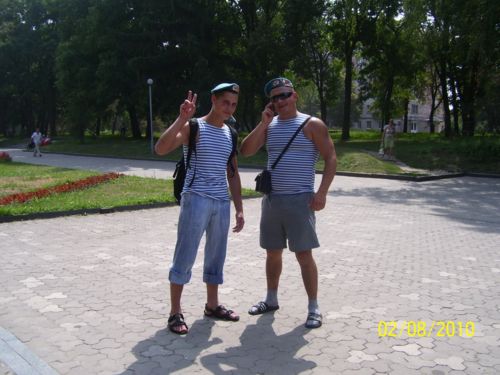 Мы друзья. Служили в одном взводе в Житомирской 95-й аэромобильной бригаде. Сделали по 5 прыжков. Завершили службу в 2007 году. Сегодня отмечаем 80 лет ВДВ. уже были у памятника афганцам, положили цветы и пообщались с советскими десантниками и ветеранами Афгана.