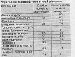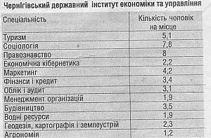 — Фінанси, облік та аудит, банківська справа. Це зрозуміло — всі хочуть мати гроші. Правознавство (юриспруденція). Знову затребуване товарознавство. Тапер ця професія отримала нову назву — маркетинг. Раніше товарознавець, а тепер маркетолог, вивчають одне й те ж — попит і пропозицію на споживчому ринку. Митна справа приваблює чимало випускників. До цього переліку я додав би комп'ютерні мережі, а в педуніверситетах — іноземну мову (англійська, французька). У цьому плані Чернігівщина мало чим відрізняється від інших областей України.