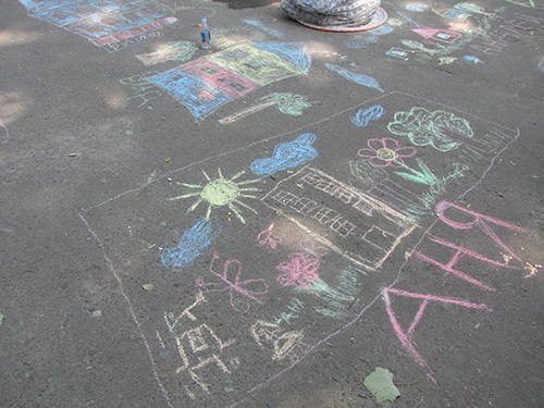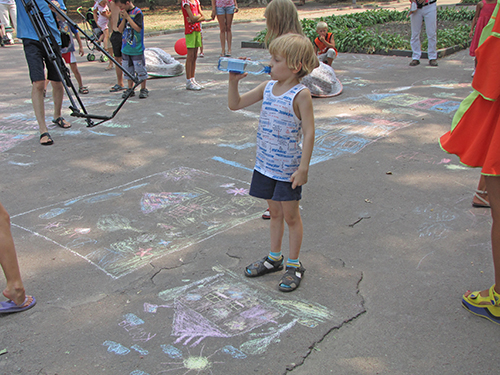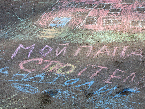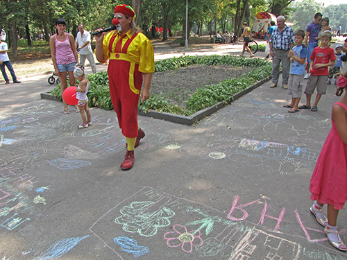 Праздник начался с конкурса детского рисунка на асфальте «Я строитель – волшебник». Много сил и стараний приложили юные участники, изображая здания, которые строят их папы и мамы. А затем, при участии веселого клоуна, дети со своими родителями участвовали в различных конкурсах.