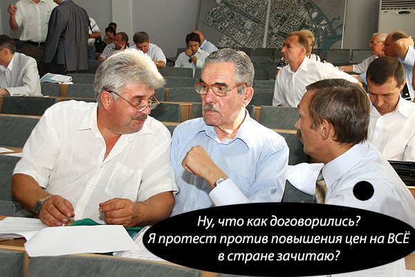 Возрастает и степень популизма в нашем совете. Рассмешили коммунисты: они зачитали обращения к президенту Украины с требованием отменить „грабіжницьке підвищення цін” на коммунальные услуги. Будто коммунисты не в президентской коалиции и не в равной мере несут политическую ответственность за действия правительства.