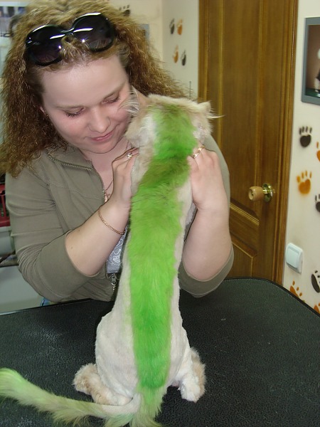 — Все материалы у нас качественные, — рассказывает Ольга, — в основном производства Франции и США. Это всевозможные духи для животных, краски, шампуни, кондиционеры. Вреда животному они не приносят: краска на травах не токсичная и сходит после четвертой мойки или через 1,5 месяца без купания. Шампуни тоже специальные. Кстати, ни в коем случае нельзя мыть животное шампунем человеческим!
