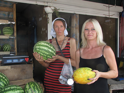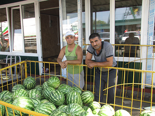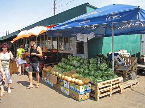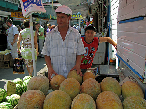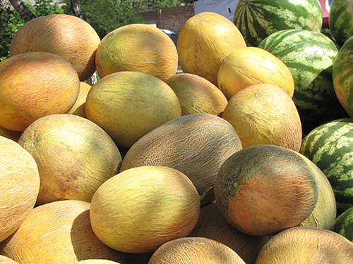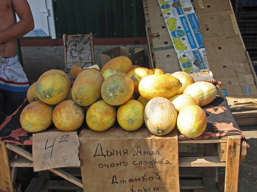 Центральный городской рынок встречает посетителей разнообразием бахчевых культур. Прямо у центрального входа слева, продавец Николай (торгует вместе с сыном), радушно предложил попробовать дыню: «Попробуй, сладкая словно мед, попробуешь, не пройдешь мимо». Дыня действительно оказалась сладкой и приятной на вкус.