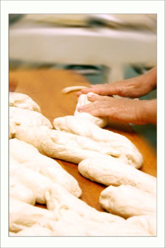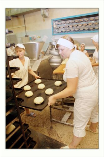 Далее – святая из святых – производственный цех. Здесь такая же тишина и порядок. Персонал в свеженакрахмаленной форме колдует над тестом. Работа идет слаженно – у каждого свой кусок работы, который он делает быстро, профессионально, с душой…