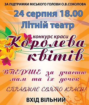 Запрошуємо Вас на справжнє свято краси – конкурс краси «КОРОЛЕВА КВІТІВ», що відбудеться в рамках заходу «Виставка квітів і плодів» до Дня Незалежності у Центральному парку культури і відпочинку.
