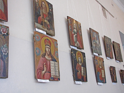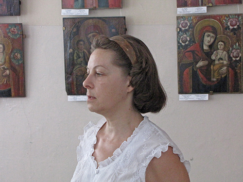 Об экспозиции икон, во втором зале, рассказала Светлана Михайловна Курач. На выставке представлено 27 образцов народной иконы Черниговщины и Киевщины. Поклонники прекрасного увидели образы: Николая, Варвары, Прасковьи и других святых. Большую часть выставки занимают образцы черниговского домашнего иконописа. В них прослеживается формирование христианского мировоззрения. Наряду с работами черниговских мастеров представлены образцы и киевского иконописа.