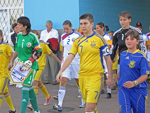 Сборная Украины: Ирина Зварич, Ирина Василюк, Людмила Пекур, Елена Ходирева, Алла Лишафай, Татьяна Черная, Дарина Апанащенко, Ольга Бойченко, Татьяна Романенко, Вера Дятел, Оксана Яковишин.
