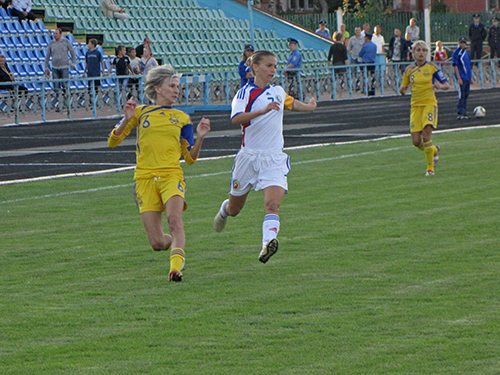 Права на ошибку в этом матче украинки не имели. К сожалению, в последнем туре российского чемпионата порвала связку одна из основных защитников команды Валентина Котик, которая из-за этого не смогла помочь команде. Остальные девушки смело рванулись в бой, и на глазах у собственных болельщиков доказали свое преимущество. Дарья Апанащенко на 22-й минуте открыла счет!