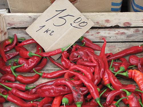 Цены на помидоры — 2,5-4 грн/кг., перец сладкий — 3,5-5 грн/кг., острый перец — 10-20 грн/кг.