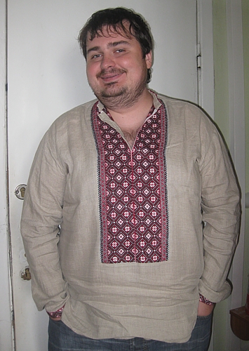 Сергій Кириченко у вишиванці, купленій на базарі в Косові (Івано-Франківська область). Ціна вишиванки – 700 гривенm, ручна робота.