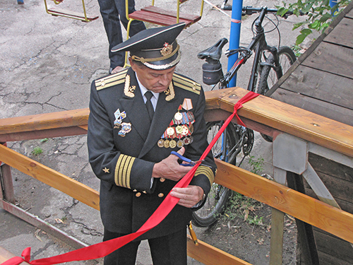 В торжественной обстановке, красную ленточку на трапе перерезал настоящий моряк – капитан 2-го ранга Шило Владимир Федорович, который 35 лет отдал морскому флоту, побывал на всех морях, а сейчас находится на заслуженном отдыхе. Чтобы попасть на корабль, дети загадывали желание и записывали его на листочках.