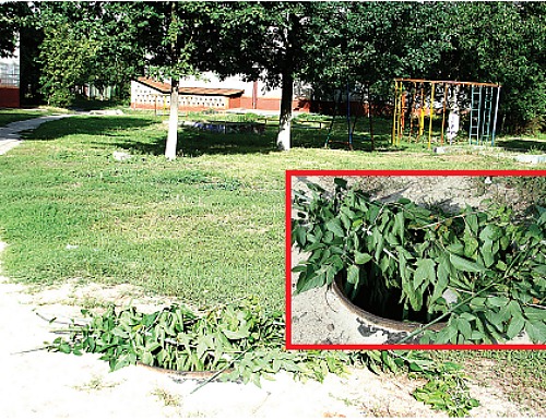 Мало того, что она без люка, так еще и умник какой-то её листьями прикрыл! А если упадет туда ребенок, кто ответит?