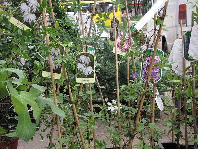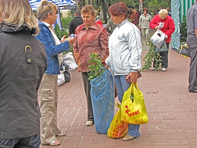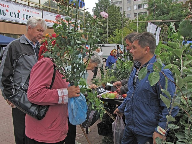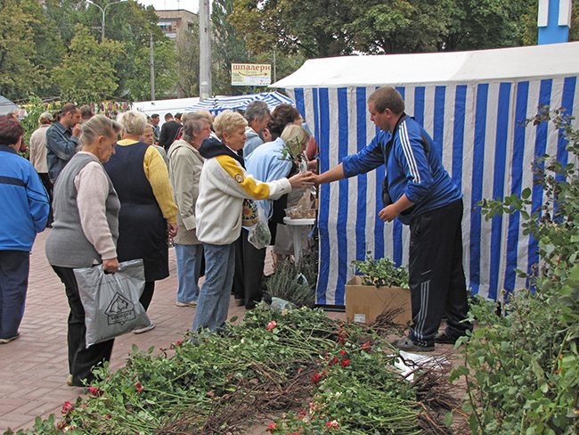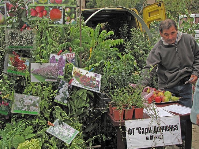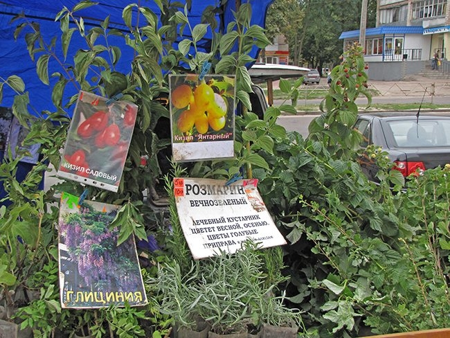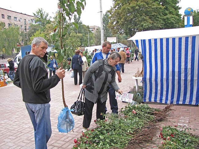 Например, саженцы различных сортов яблок: от 30 до 200 гривен. Рассада малины урожайных сортов: «Болгарский рубин», «Бабье лето» по 10 гривен. Предприниматель Алена, приехавшая из Киева, предлагает различные сорта луковиц тюльпанов: крупные луковицы по 5 гривен, мелкие – 10 гривен стаканчик. Также у нее рассада цитрусовых от 150 до 200 гривен, Клематис – 60 гривен кустик.