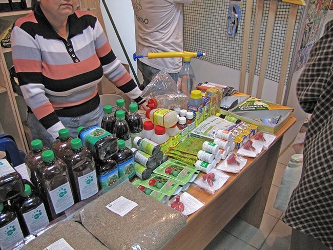 На выставке широко представлены саженцы, рассада многолетних кустарников, различные растения для оформления альпинариев, садовый инвентарь. Огромный ассортимент семян, удобрений, почвенных смесей.