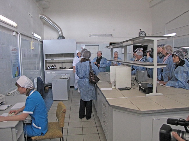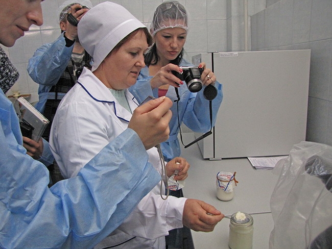 Журналисты посетили лабораторию, где на соответствие качества проверяются молочные продукты, с интересом наблюдали в микроскоп бактерии, которые применяются для закваски различных кисломолочных продуктов. А затем, через магазин готовой продукции проследовали в дегустационный зал, где продегустировали различную продукцию молокозавода.