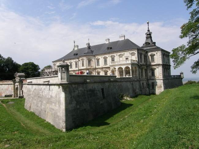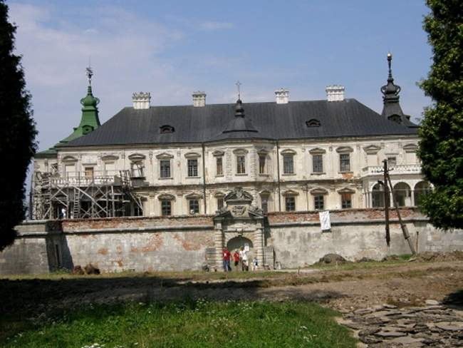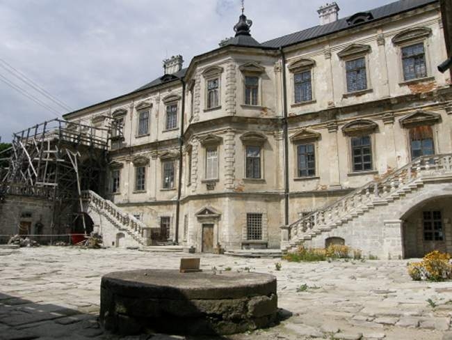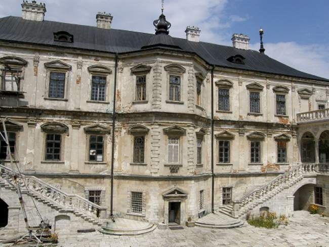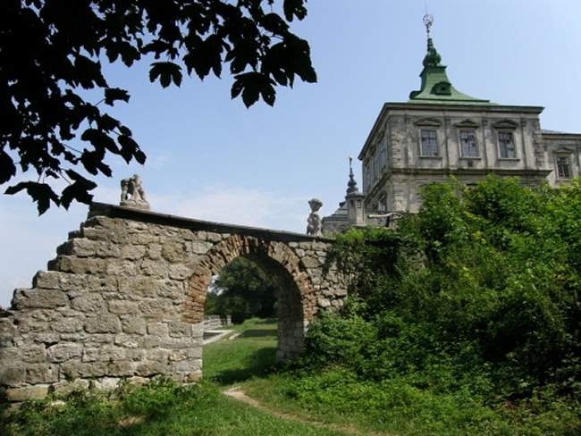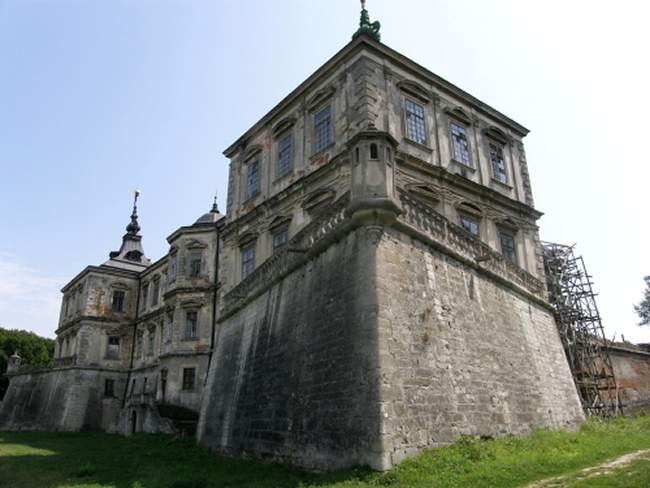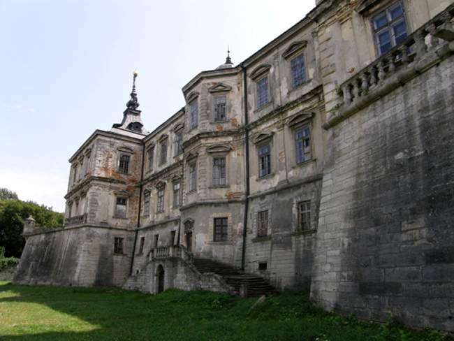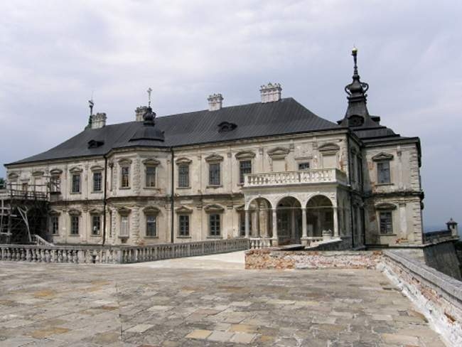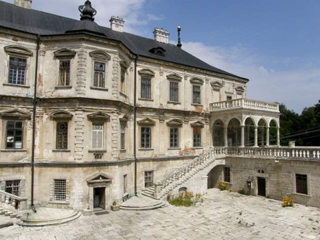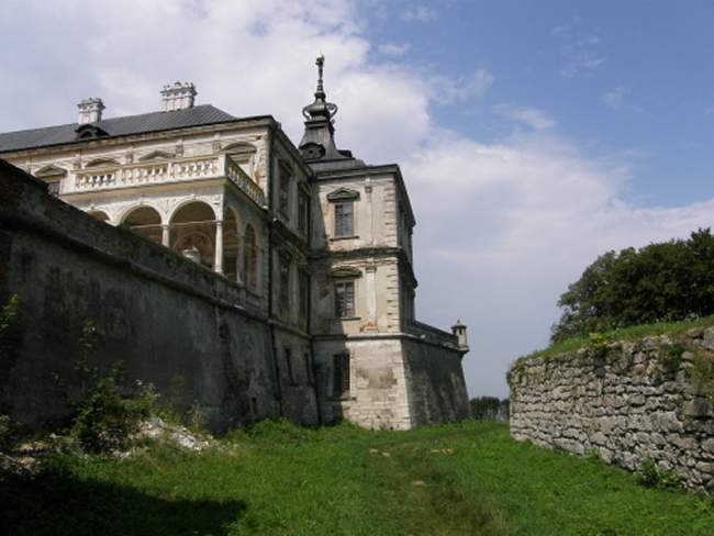 Подгорецкий замок вместе с трехэтажным дворцом построен в 17 веке. В разное время им владели польские магнаты Конецпольские, Собесские, Жевусские. При последних в замке была кармазиновая комната, а также китайский, золотой, зеркальный, мозаичный и зеленый кабинеты, арсенал, огромная библиотека, архив, коллекция портретов государственных и духовных деятелей. Сейчас ничего этого нет - в советские времена из королевского замка в Ленинград были вывезены все скульптуры, которые теперь украшают Летний сад, а в самом замке открыт санаторий для больных туберкулезом. В 1997 г. замок передан Львовской галерее искусств, и до сегодняшнего дня в нем идет реставрация.