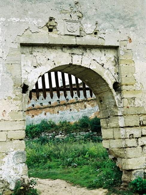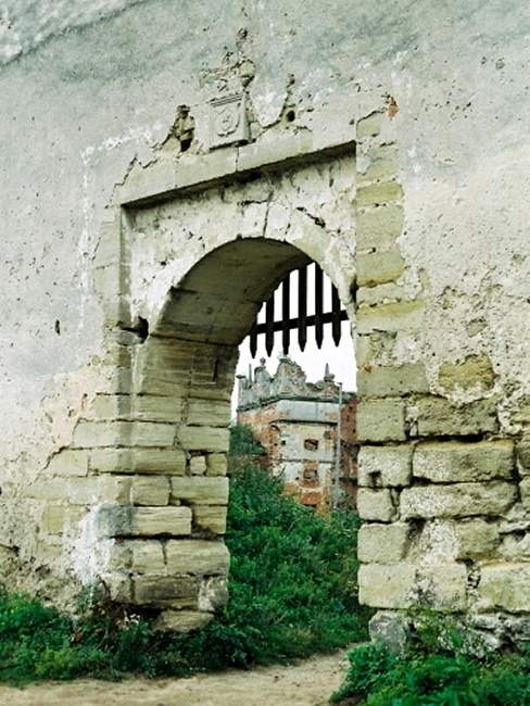 Внутри замка не сохранилось ни одной древней постройки, и только местные гуси, зайдя через крепостные ворота с гербом Доминика Заславского - владельца замка в 17 веке, затем чинно рассаживаются на траве среди пустого замкового двора.