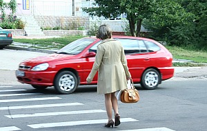А весь секрет – в мужчинах, одетых в салатовые светоотражающие жилеты, что стоят по обе стороны перехода, и в красивой машине на обочине с надписью «ДАІ», возле которой важно прогуливаются люди в форме. Вот как! Эх, если бы так хорошо было всегда и везде... Но нет же! На том самом месте в 8.45, когда гаишники благополучно отбыли, осуществив свою миссию, стоим и считаем: «Одна, две, три, …пять, шесть машин промелькнуло, а никто и не собирается пропускать пешеходов, собравшихся переходить дорогу!» Более того: их чуть не сбивают на полпути!
